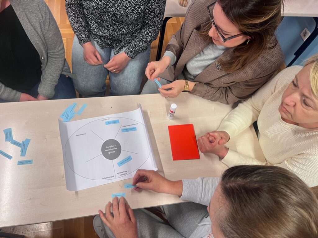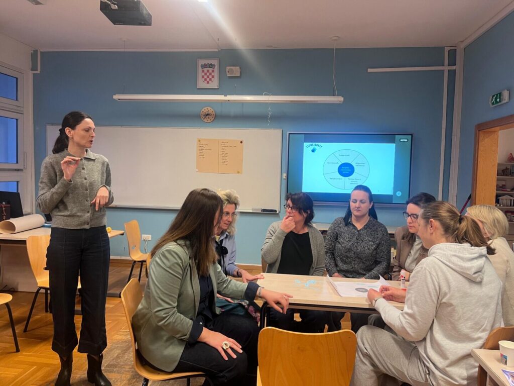 Naši učitelji, zajedno s učiteljima Osnovne škole Okruk, sudjelovali su 9. i 10. ožujka na dvodnevnoj edukaciji Lions Quest – Vještine za adolescenciju, održanoj u OŠ Okruk. Riječ je o programu koji se ubraja među šest najuspješnijih znanstveno evaluiranih programa socijalno-emocionalnog učenja u svijetu, a namijenjen je učenicima u dobi od 10 do 14 godina. Program je usmjeren na cjelovit razvoj djece i mladih te na osnaživanje njihovih socijalnih, emocionalnih i životnih vještina. Lions Quest školski je program razvoja mladih koji poseban naglasak stavlja na prevenciju vršnjačkog nasilja, ovisnosti, nasilnih i konfliktnih situacija, ali i na razvoj pozitivnih obrazaca ponašanja, izgradnju karaktera te usvajanje vrijednosti važnih za život u školi i zajednici. U središtu programa nalaze se teme poput odgovornosti, poštovanja, suradnje, empatije i donošenja odgovornih odluka. Kroz edukaciju su naši učitelji imali priliku upoznati se s brojnim sadržajima i metodama rada koje pomažu učenicima u razvoju važnih životnih kompetencija, kao što su: upravljanje emocijama i rješavanje sukoba, razvoj samopouzdanja i samodiscipline, odgovorno ponašanje i prosuđivanje, djelotvorna komunikacija, donošenje odluka i rješavanje problema, odupiranje negativnim vršnjačkim pritiscima, postavljanje ciljeva te jačanje međuljudskih odnosa i aktivnog djelovanja u zajednici. Posebna vrijednost programa Lions Quest jest u tome što povezuje učenike, obitelj, školu i širu društvenu zajednicu, prepoznajući da je odgoj i podrška mladima zajednička odgovornost svih uključenih. Program također potiče razvoj humanosti, volontiranja i društvene osjetljivosti kod mladih. Edukacija je realizirana uz financijsku potporu Ministarstva znanosti, obrazovanja i mladih, u sklopu preventivnih projekata, a vodila ju je Renata Buzdovačić, soc. ped., nacionalna trenerica programa, koja je svojim stručnim vodstvom i iskustvom sudionicima približila vrijednosti i mogućnosti primjene programa u svakodnevnom odgojno-obrazovnom radu. Sudjelovanje na ovoj edukaciji za naše je učitelje bilo vrijedno profesionalno iskustvo i dodatni poticaj za daljnje jačanje sigurnog, podržavajućeg i poticajnog školskog okruženja. Stečena znanja i vještine zasigurno će pridonijeti kvalitetnijem radu s učenicima te razvoju pozitivnih odnosa, odgovornosti i međusobnog uvažavanja u školskoj zajednici. Zahvaljujemo domaćinima iz OŠ Okruk na srdačnom gostoprimstvu, ugodnoj suradnji i izvrsnoj organizaciji edukacije.